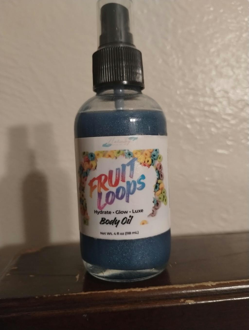 Lorri Foster Love the packaging when my products arrived. The fruit loops oil smell really good, it has a shimmer to it looked like to me. People commented on how sweeti smelled. Ordering the scrub next along with more body oil, because my daughter took mine and wears it to school.