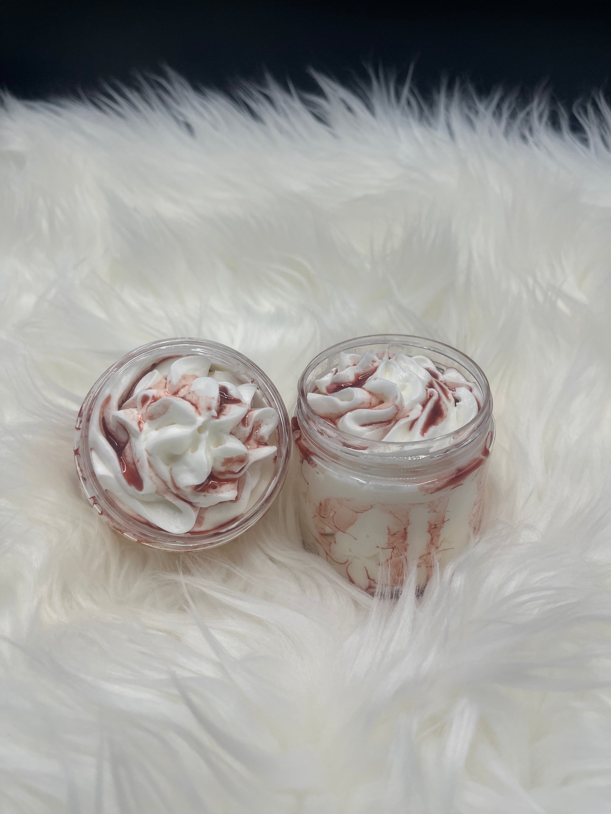 Ingredients: Shea Butter, Mango Butter, Avocado Oil, Jojoba Oil, Sweet Almond Oil, Coconut Oil, Tea Tree Oil, Vitamin E, Fragrance, Mica, Arrowroot Powder
